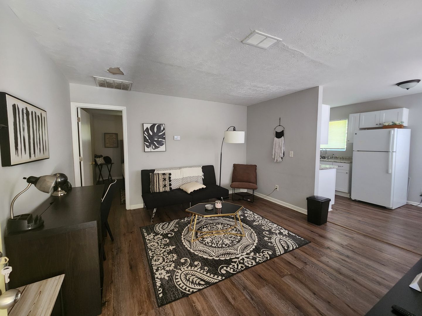 Welcome to the Furnished Apartments Rentals in Midtown Columbus, a one-bedroom, one-bathroom gem located in the heart of Columbus, GA. This apartment offers a perfect blend of comfort and convenience, with water, gas, lawn care, pest control, and internet included in the rent. Step inside to find a spacious living room, ideal for relaxation or entertaining. The apartment features beautiful wood floors that add a touch of elegance to the space. Stay calm and comfortable all year round with central air and ceiling fans. The bedroom and bathroom are designed with a keen eye for detail, ensuring a comfortable living experience. The apartment comes fully furnished, saving you the hassle of moving and setting up furniture. Experience the ease of living in a place where everything is taken care of for you.