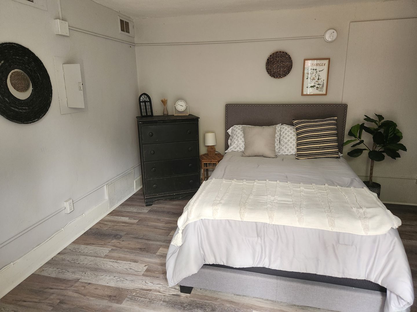 Welcome to the Furnished Apartments Rentals in Midtown Columbus, a one-bedroom, one-bathroom gem located in the heart of Columbus, GA. This apartment offers a perfect blend of comfort and convenience, with water, gas, lawn care, pest control, and internet included in the rent. Step inside to find a spacious living room, ideal for relaxation or entertaining. The apartment features beautiful wood floors that add a touch of elegance to the space. Stay calm and comfortable all year round with central air and ceiling fans. The bedroom and bathroom are designed with a keen eye for detail, ensuring a comfortable living experience. The apartment comes fully furnished, saving you the hassle of moving and setting up furniture. Experience the ease of living in a place where everything is taken care of for you.